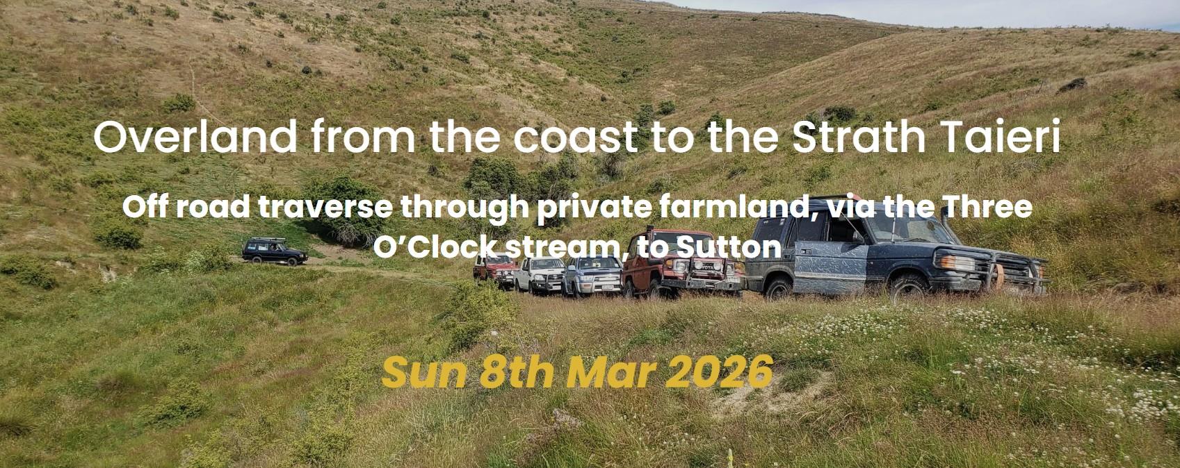 Ready for a serious adventure? The Taieri Rotary Club is giving you rare access to some of Otago’s most spectacular private back-country — and you won’t want to miss it. This is a full‑on 4WD mission from the coast to Sutton, crossing remote valleys, rugged ridgelines, high stations, and the legendary Three O’Clock Stream.